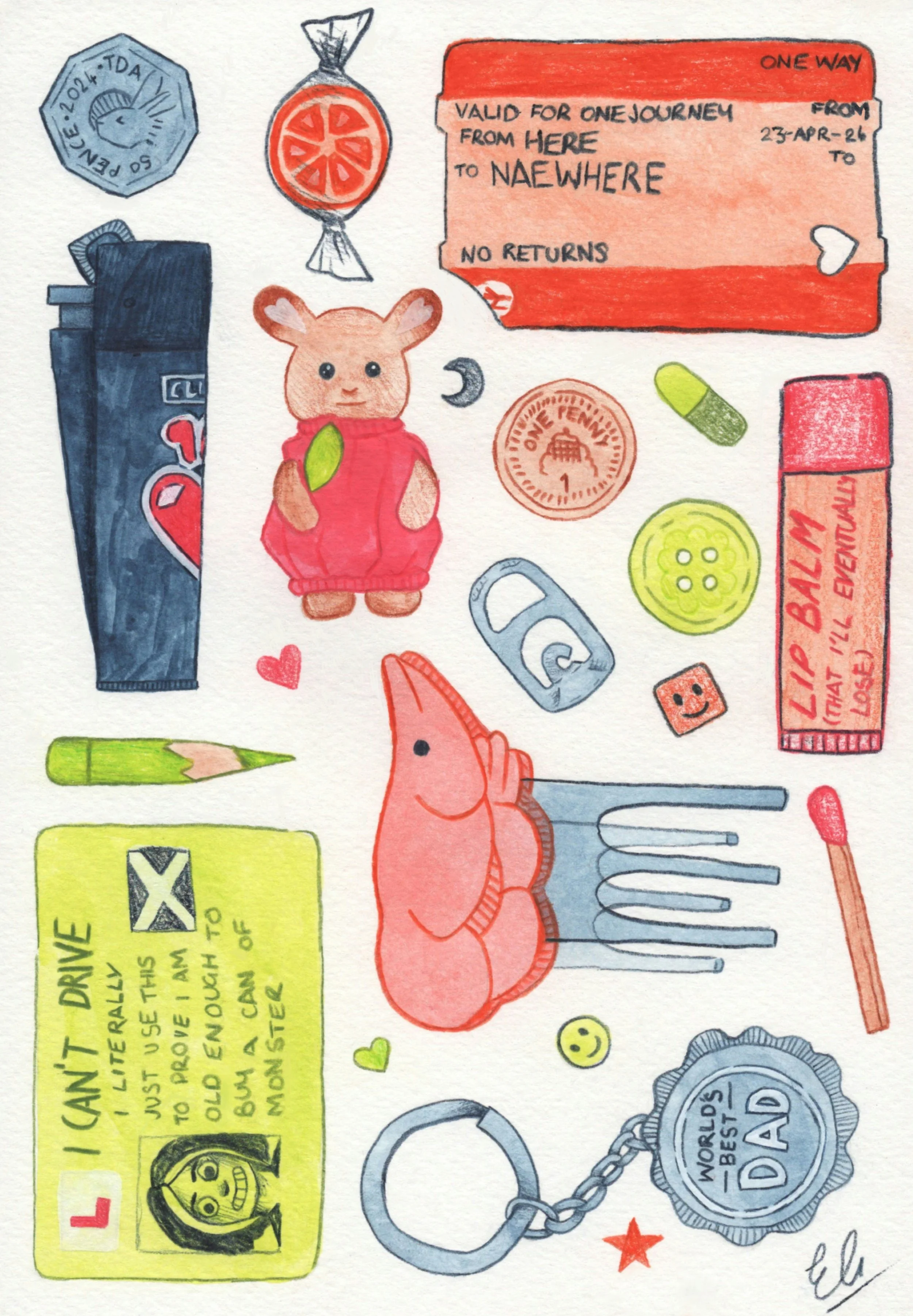 Pockets (2024), Derwent Inktense Pencils for Scrawlr Box Challenge April 2024